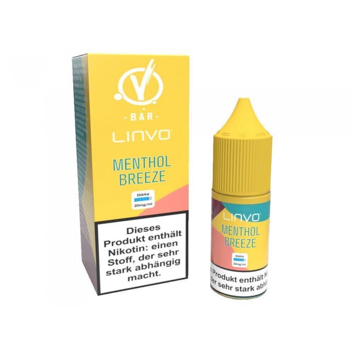 Von Linvo kommt das Menthol Breeze Nikotinsalz Liquid, welches beim Vapen in Ihrer E-Zigarette den Geschmack von Menthol entwickelt. Ihr Linvo Nikotinsalz Liquid erhalten Sie in der Nikotinstärke 20mg/ml. Da das NicSalt Liquid genau so stark aromatisiert ist, wie das Nikotinsalz Liquid aus der bekannten Linvo Bar Einweg E-Zigarette, können Sie das gleiche Geschmackserlebnis auch in Ihrer normalen E-Zigarette genießen. Sie erhalten mit jeder Flasche 10 Milliliter Liquid mit der von Ihnen ausgewählten Stärke.